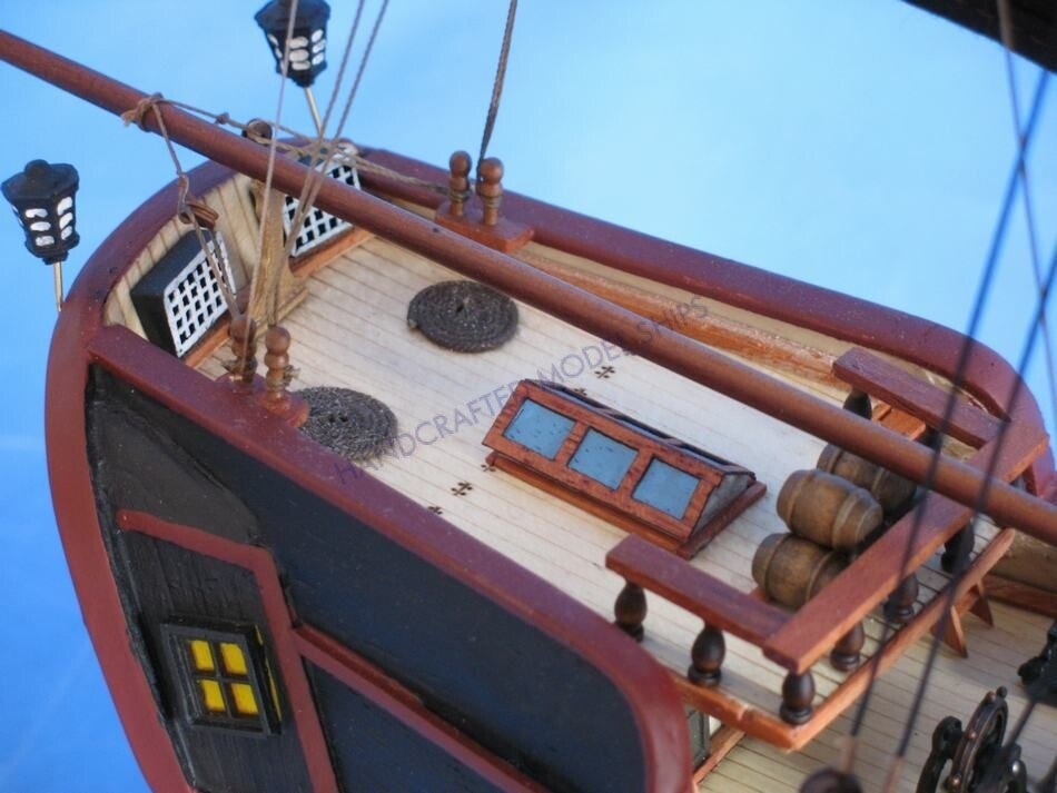 Search for lost treasure as you set sail for adventure on the high seas aboard this scale tall model ship replica of a Caribbean pirate ship. This exquisitely constructed sailing ship is highlighted by fine craftsmanship and attention to detail. These Caribbean pirate ship models proudly display their exquisitely-crafted features whether seated upon a shelf, desk, or table, and bring an indomitable spirit of adventure to any room or office.